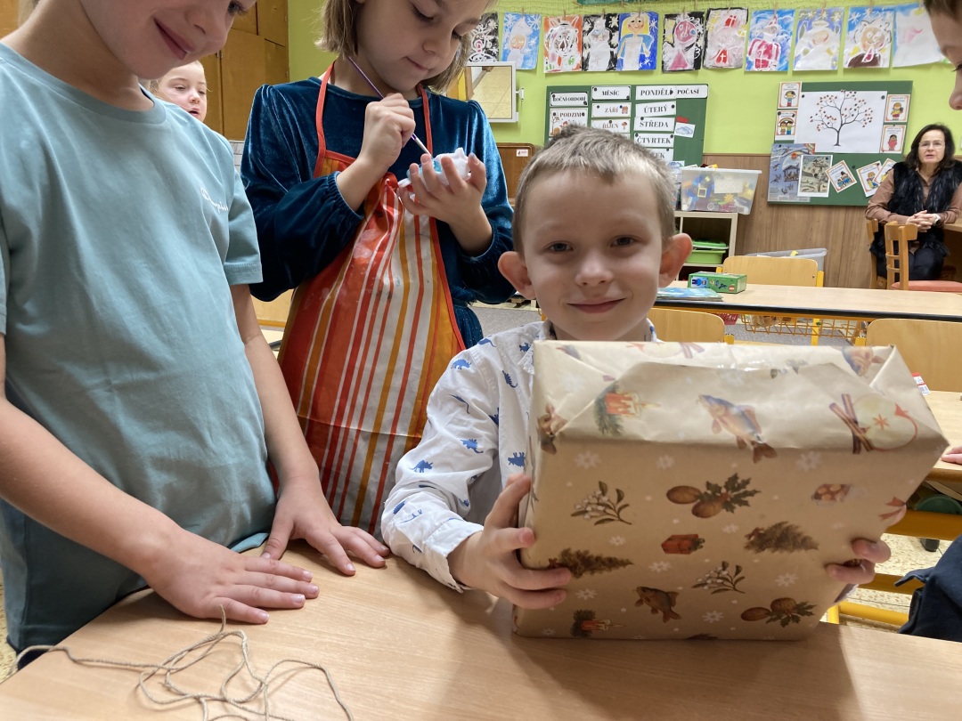 Nejkrásnější svátky roku jsou před námi a my jsme se na ně chtěli naladit a také si připomenout zvyky, které pak můžeme vyzkoušet i doma. Sváteční oblečení, chutné cukroví, prostřený stůl, vánoční stromeček, to nesmělo chybět ani ve třídě. A zvyky, které si můžete vyzkoušet: rozkrajování jablíčka, hrníčková kouzla, sfoukávání svíčky, házení botou – jen dívky na vdávání, pouštění lodiček, pusa na líčko pod jmelím. A to nejlepší nakonec – radost při rozbalování dárečků! HB